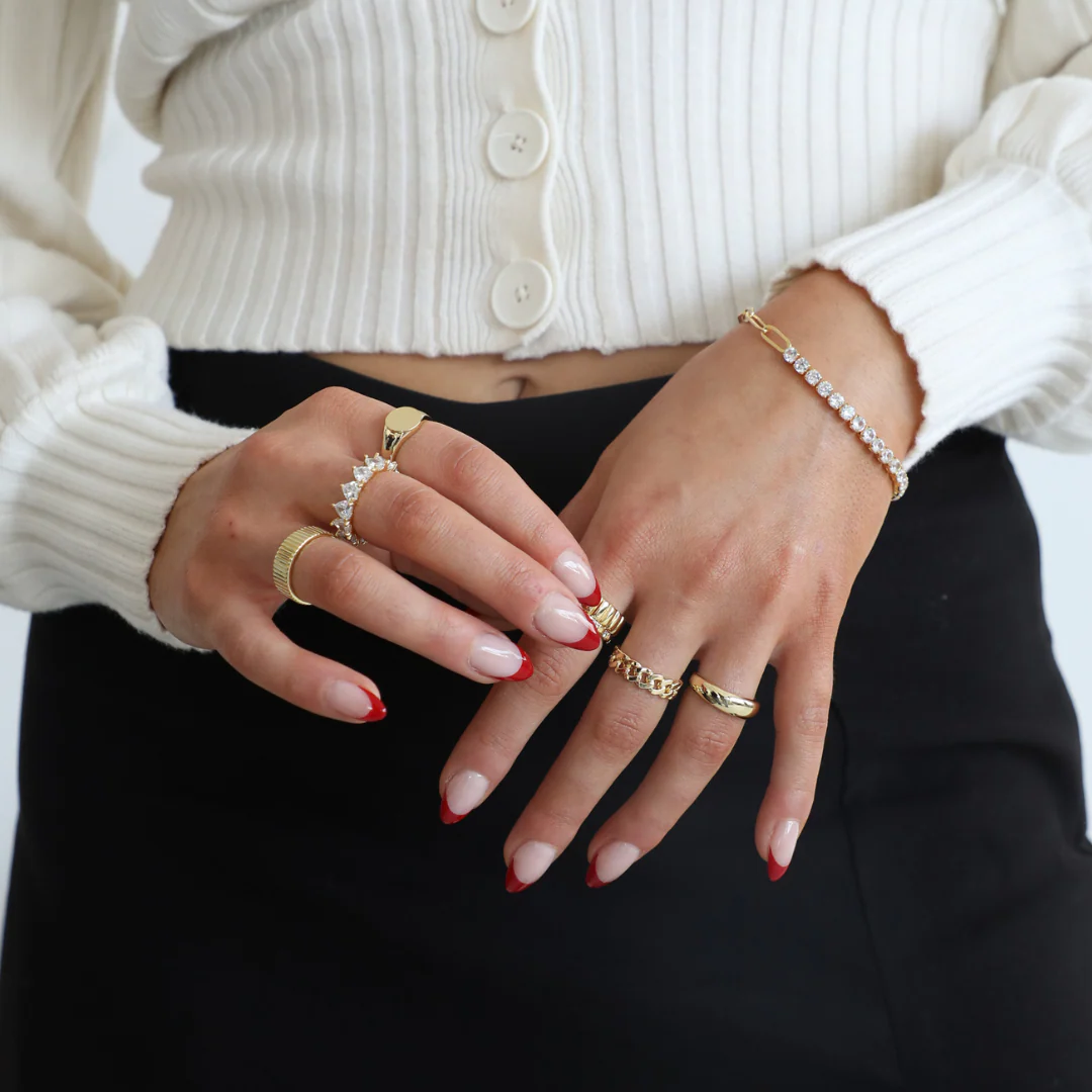 Who knew basic could look so good? This ring brings all the same classy vibes as our first Basic B ring, just with a smoother dome shape! Complete your look with the Basic B Necklace!